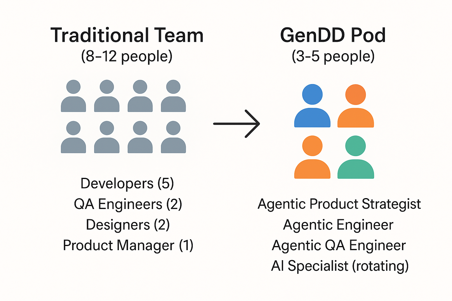 The smartest engineering organizations aren’t just adopting AI tools—they’re fundamentally restructuring around the new economics of software development. HatchWorks documented a shift from traditional 8-12 person development teams to “GenDD pods” of just 3-5 people: