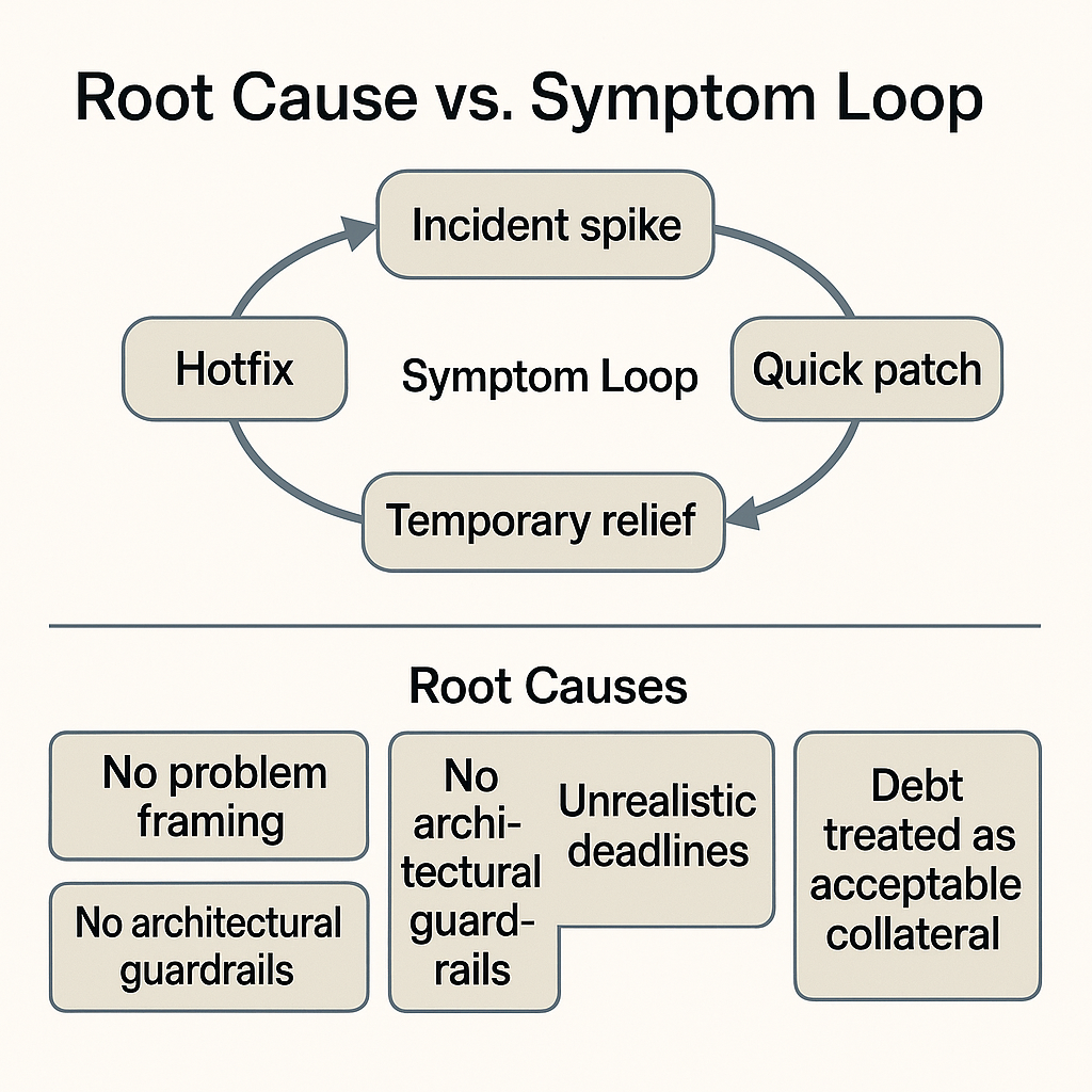 When leadership treats symptoms rather than causes, technical debt is not a side effect. It becomes the organizational strategy.